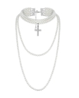 Classic BAROQUE necklace with five strands of glass pearls.Embellished with a crystal cross at the center of the composition.The perfect necklace to complement your luxurious look.