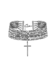 A delicate bracelet made of five rows of silver-mirrored crystal.The cross-shaped pendant is adorned with fine cubic zirconia, adding texture and brilliance.A striking accent to elevate your style.