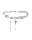 PEARL CROSS — a necklace made of genuine pearls and rhinestone chains.Bold, statement-making, and eye-catching.